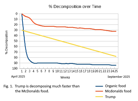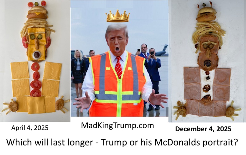Results indicate the the Mcdonald's portrait will easily outlast its subject. Based on his rate of decline, Trump is projected to leave office due to failing health by December 5, 2025*.